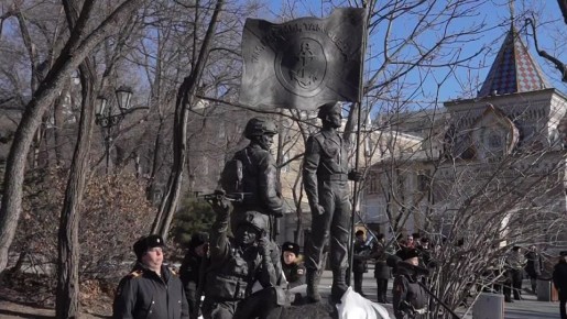 В Адмиральском сквере три морских пехотинца смотрят в сторону родной бухты Золотой Рог.@VIII_channel