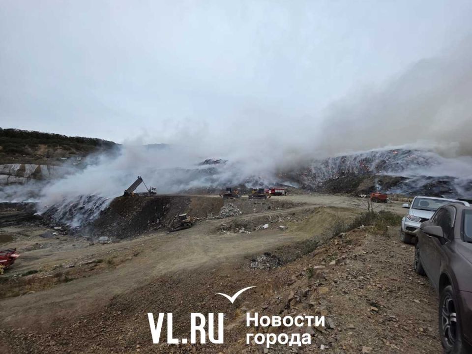 Задымление по всей площади полигона. В линии по доставке грунта для отсыпки задействовано 20 самосвалов, три бульдозера работают на формировании откосов – сталкивают грунт на участки возгорания и задымления. Две пожарные машины находятся...