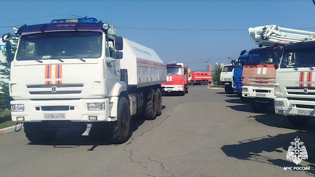 Во Владивостоке в Специализированной пожарно-спасательной части проведены учения с участием расчётов службы радиационной, химической и биологической защиты. Сотрудники чрезвычайного ведомства отработали надевание радиационнозащитных и изолирующих химических костюмов, а также смоделировали ситуацию, в результате которой выявили при движении колонны участки дорог, загрязнённые радиацией. Мобильный комплекс выполнил дезактивацию техники и проезжей части.