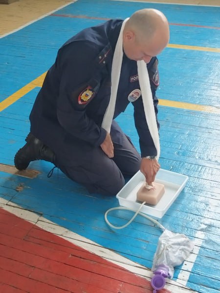 Сотрудники полиции отработали навыки оказания первой помощи пострадавшим и их эвакуации в безопасную зону, определения степени и характера полученных повреждений. Были изучены варианты укладки индивидуальной аптечки, а также практическое применение различных видов и способов остановки кровотечения и фиксации поврежденных конечностей.