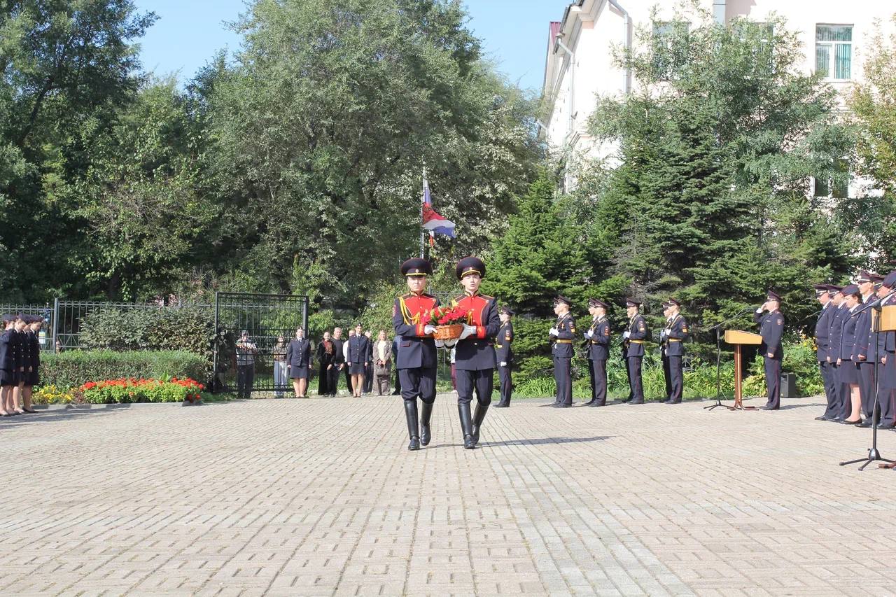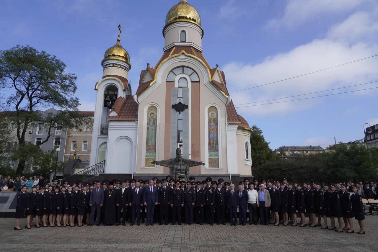 На церемонии присутствовали почетные гости: начальник Управления Федеральной службы войск национальной гвардии Российской Федерации по Приморскому краю генерал-майор полиции Петр Рыбаков, врио начальника УМВД России по Приморскому краю полковник полиции Алексей Попов, заместитель начальника УМВД России по Приморскому краю - начальник следственного управления полковник юстиции Дмитрий Сумец, заместитель директора Департамента по координации правоохранительной деятельности Приморского края Вадим Галин, врио Федерального инспектора по Приморскому краю Сергей Дыняк, заместитель главы администрации Владивостока Дмитрий Свитайло, председатель координационного Совета руководителей ветеранских организаций органов внутренних дел Дальневосточного Федерального округа Валерий Яшин, руководитель Епархиального отдела по взаимодействию с правоохранительными органами иерей Дмитрий Брызгалов, ветераны, а также руководство и профессорско-преподавательский состав филиала.