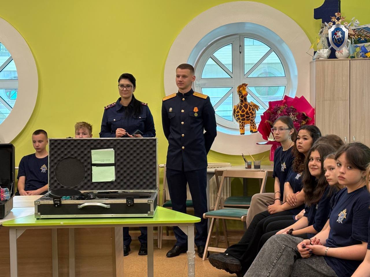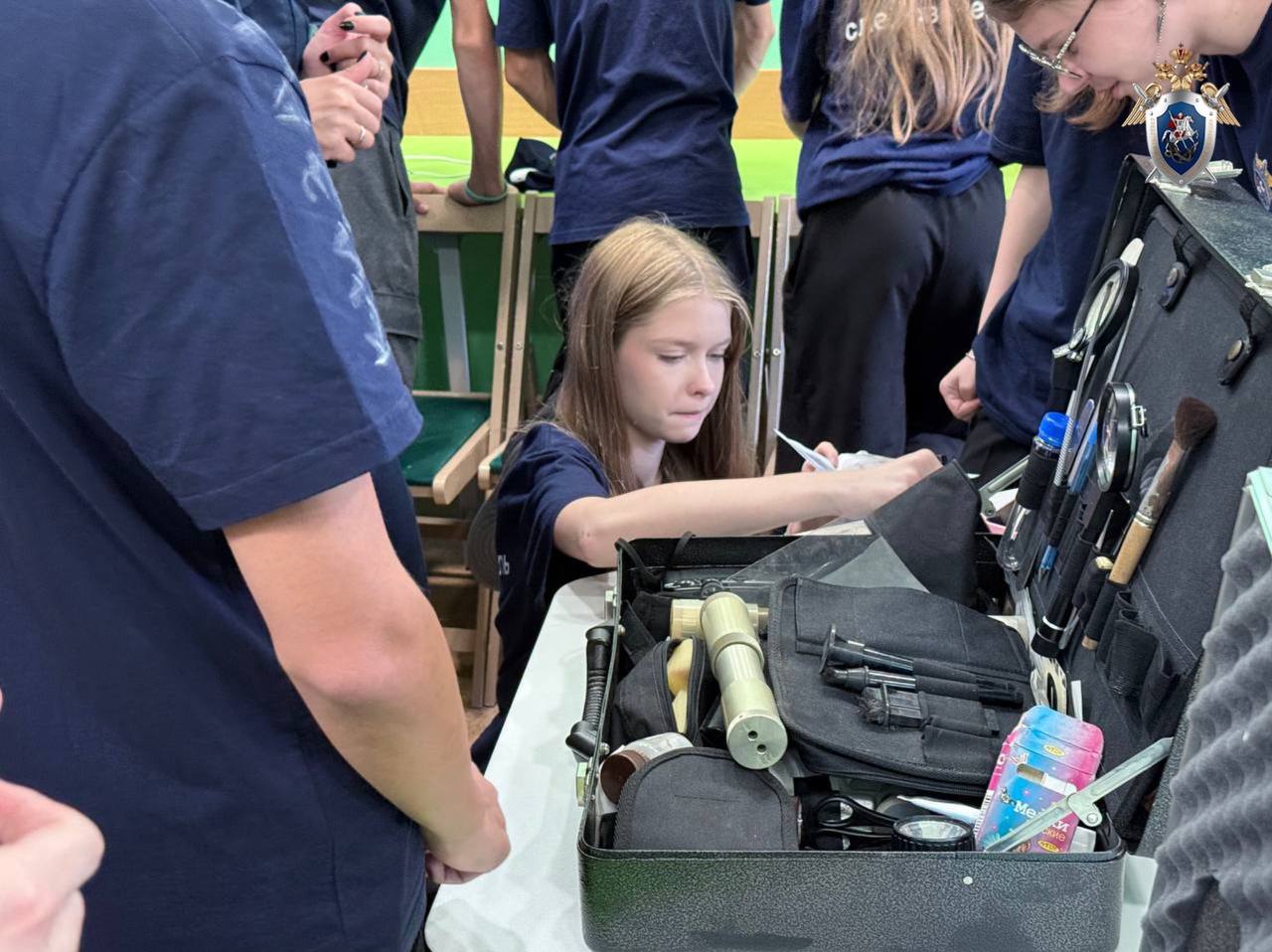 Ребятам рассказали о специальной и криминалистической технике, с помощью которой раскрываются самые сложные и запутанные уголовные дела. Также офицеры продемонстрировали на практике, как работает источник экспертного света (для обнаружения следов биологического и иного происхождения), нелинейный локатор – детектор нелинейных переходов (для обнаружения электронных устройств) и квадрокоптер (для производства фото и видео съемки с высоты). Кроме того, присутствующие ознакомились с содержимым криминалистического чемодана.