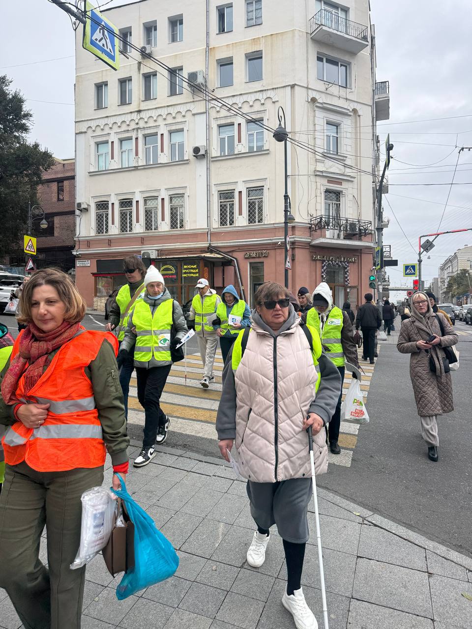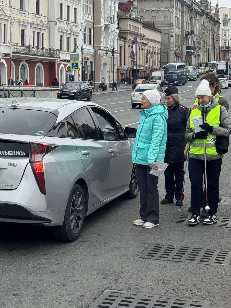 Сотрудники Госавтоинспекции Владивостокаприняли участие в ежегодной акции «Белая трость» Активисты Приморской краевой организации Всероссийского общества слепых напомниливодителям, как вести себя на дороге во время встречи с необычным пешеходом.