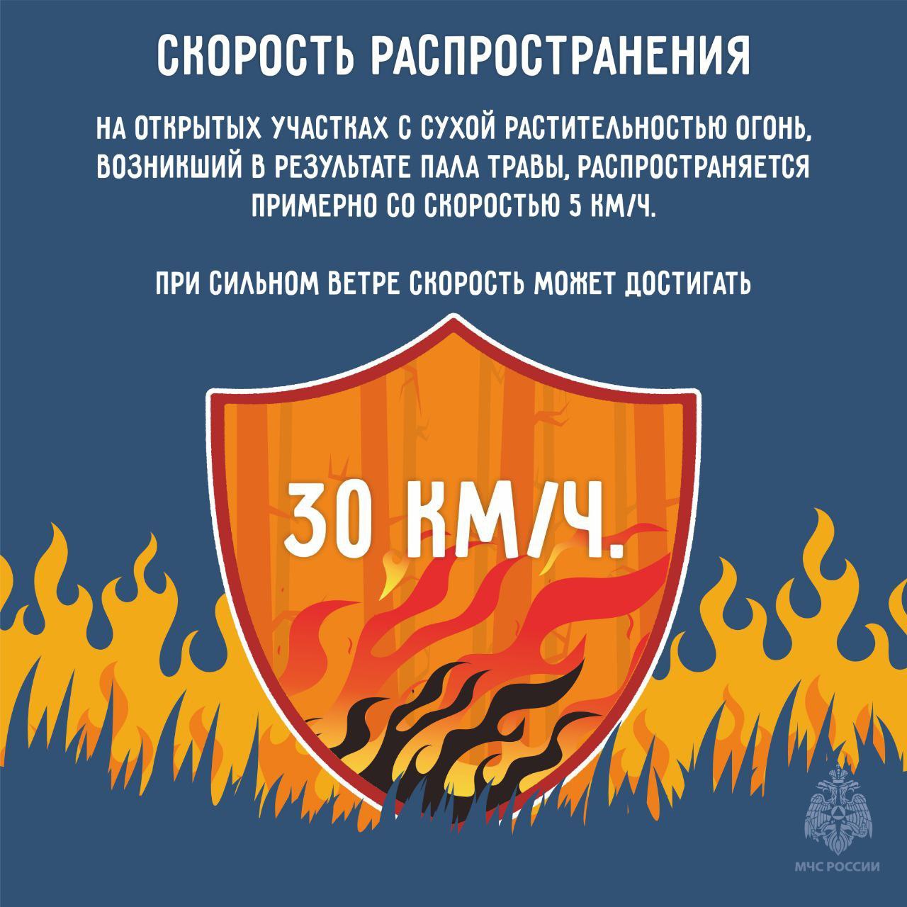 А ты знал, что огонь, возникший в результате пала травы, распространяется со скоростью 5 км/ч? А что при сильном ветре скорость может достигать30 км/ч?