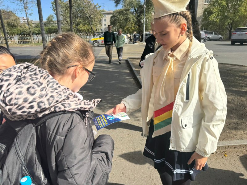 Безопасность прежде всего: в Уссурийске юным пешеходам подарили светоотражающие наклейки