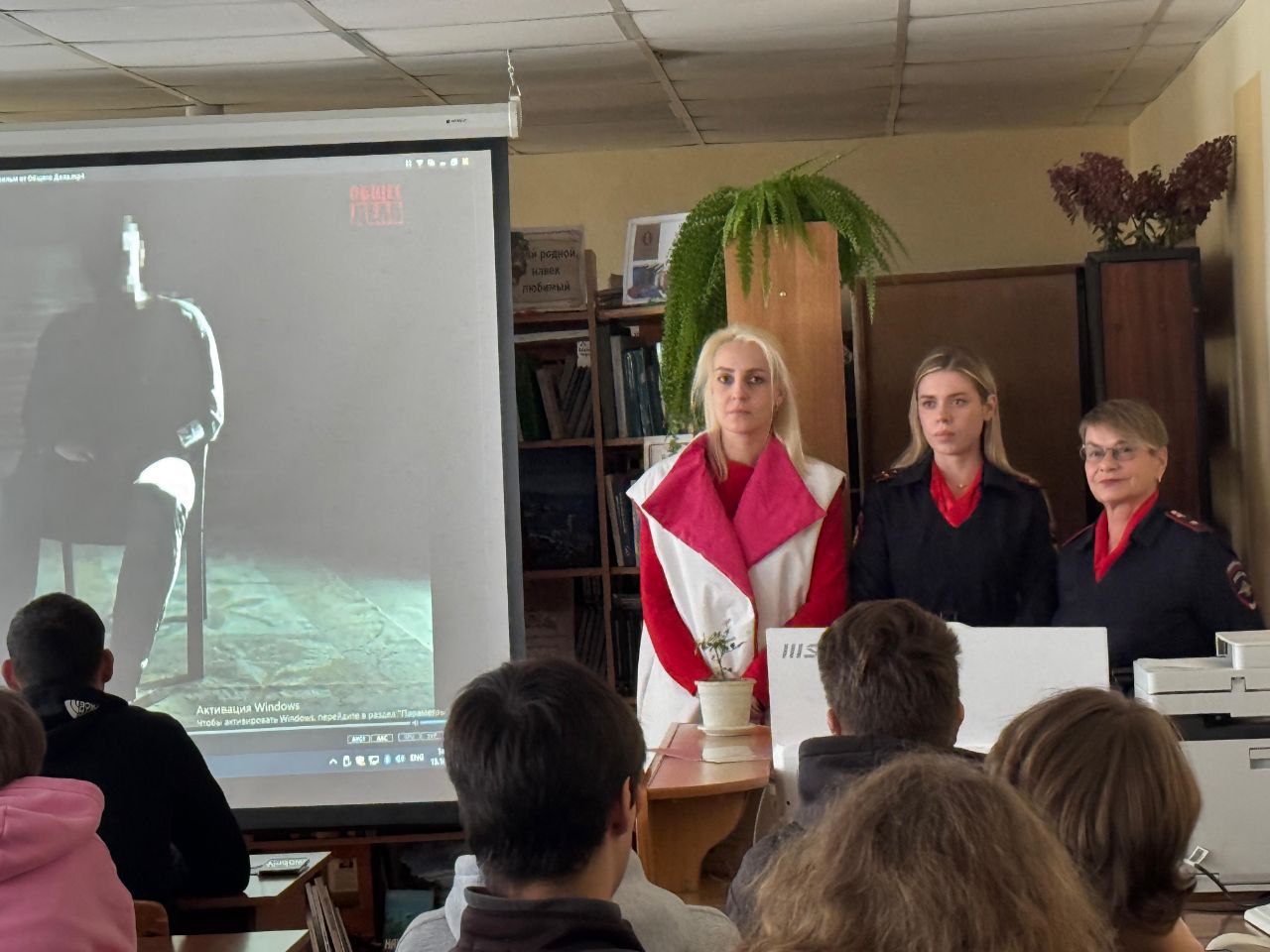 Представитель наркологического диспансера города Находка Юлия Петрова продемонстрировала ребятам видеофильм о распространении наркотических веществ в молодёжной среде. Рассказала, как несовершеннолетних подростков вовлекают в преступную среду, и разъяснила, какие могут быть последствия от потребления наркотических средств.