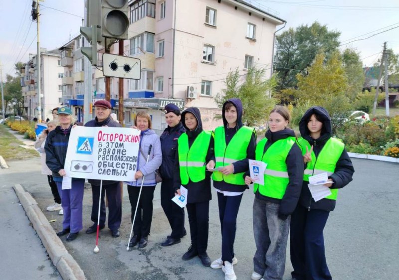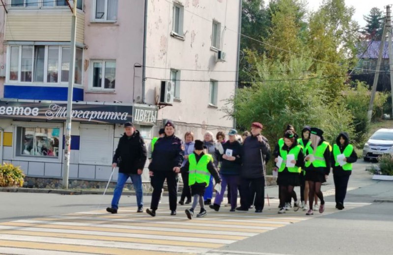 В Артёме сотрудники Госавтоинспекции совместно с ЮИД и представителями общества инвалидов вышли на улицы, чтобы напомнить водителям о необходимости уступать дорогу незрячим пешеходам.