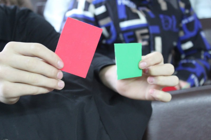 В ходе мероприятия ребятам предлагалось ответить на вопросы, составленные полицейским. На ответ «правда» участники квиза поднимали зеленую карточку, на ответ «ложь» - красную. Если ответы учащихся разнились или были неверными, ведущая говорила верный ответ и в подробностях разъясняла его. В процессе викторины ребята показали хорошие знания в юридической области.