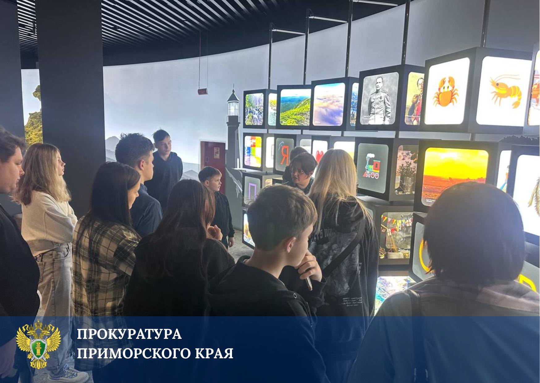 В рамках работы по правовому просвещению и социальному воспитанию молодежи сотрудники прокуратуры края совместно с воспитанниками подшефного Комплексного центра помощи семье и детям «Маяк» города Владивостока посетили Национальный центр «Россия».