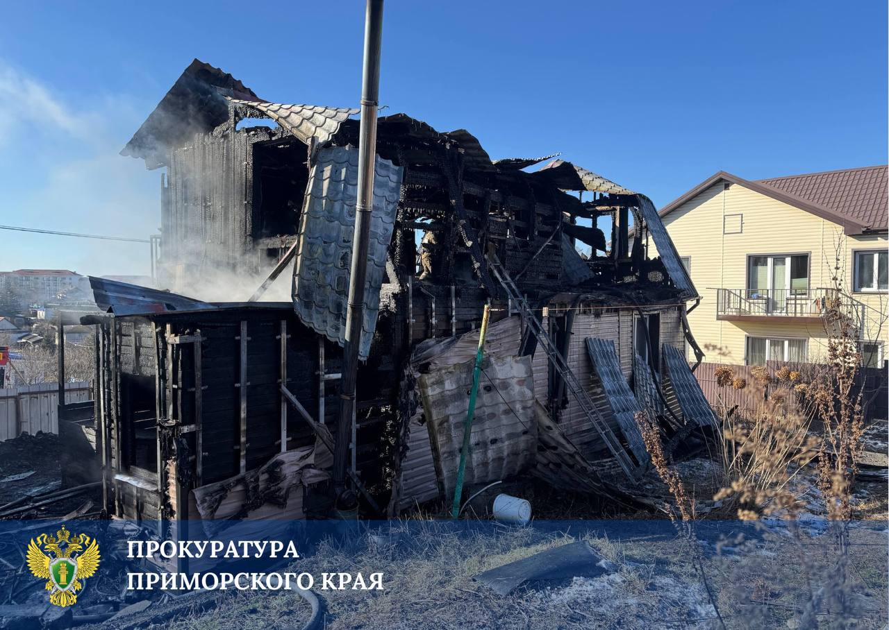 Прокуратура взяла на контроль установление обстоятельств возгорания жилого дома в городе Артёме