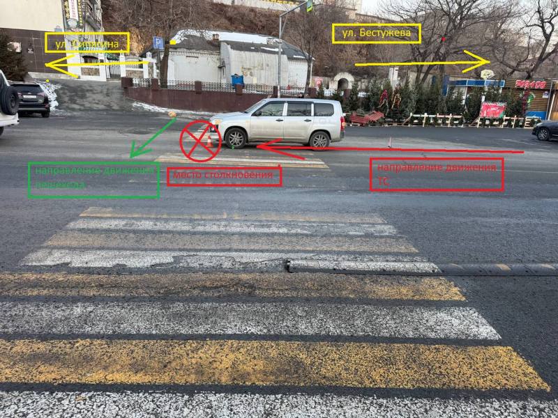 В дежурное отделение полка ДПС Госавтоинспекции УМВД России по городу Владивостоку поступило сообщение о наезде на несовершеннолетнего пешехода в районе дома № 68 «В» на улице Верхнепортовая.