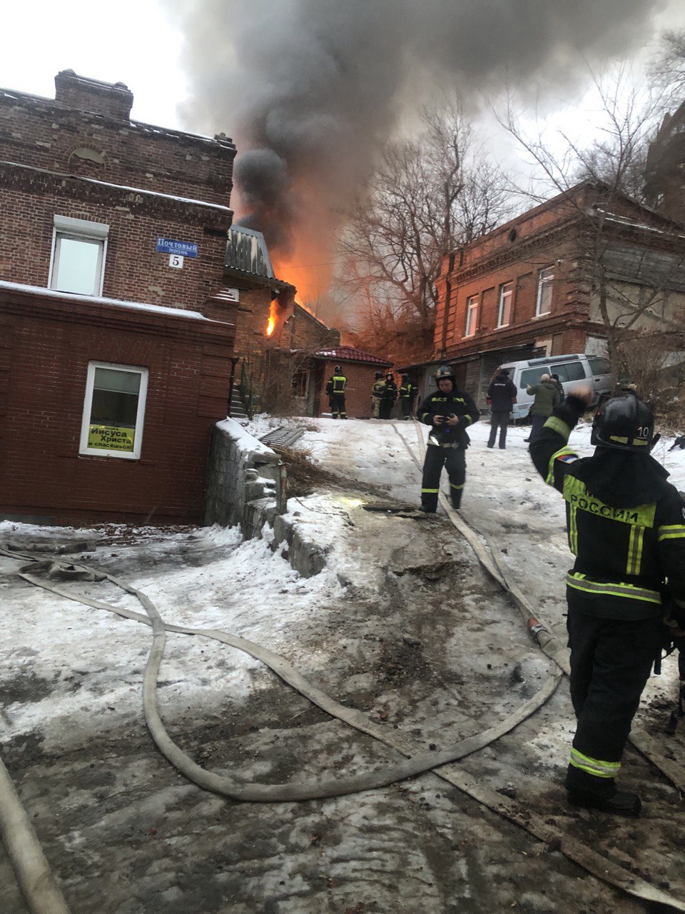 В дежурную часть полиции поступило сообщение о возгорании здания на Почтовом переулке во Владивостоке.
