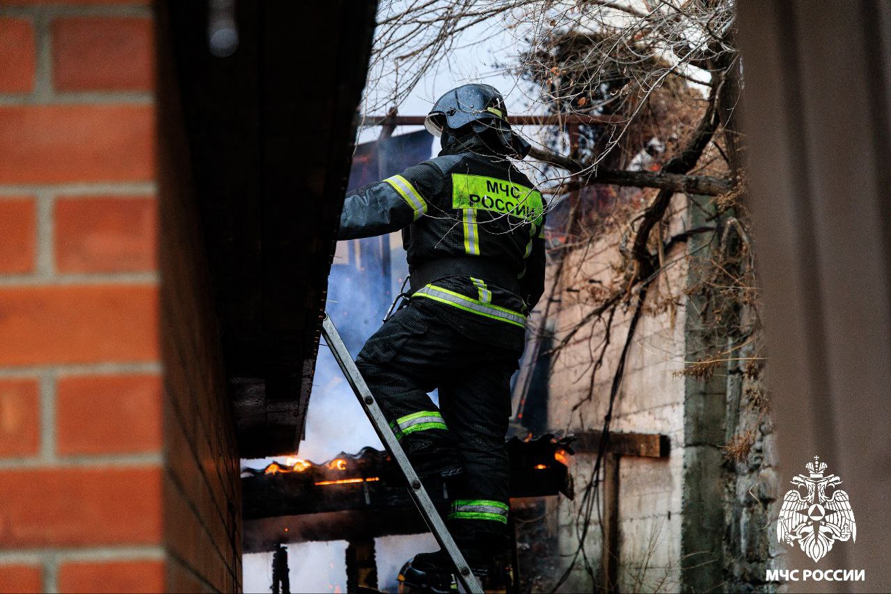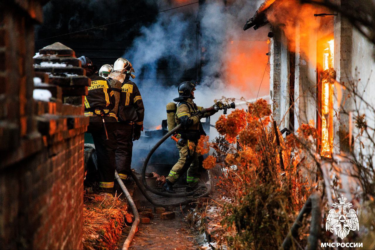 ДОП: в 15.43 пожар полностью ликвидирован на площади около 300 квадратных метров. Погибших и пострадавших нет. Дознаватели МЧС России проводят проверку по факту пожара для установления причины и всех обстоятельств происшествия.