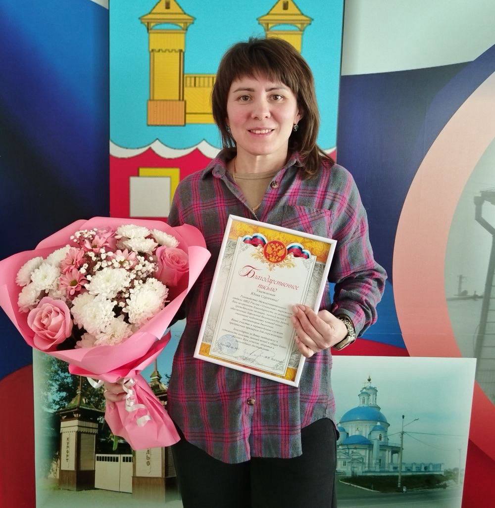 В торжественной обстановке начальник Межмуниципального отдела МВД России «Усольский» полковник полиции Василий Васильев вручил педагогу цветы и благодарственное письмо за многолетнее плодотворное сотрудничество в подготовке, организации и проведении мероприятий по профилактике детского дорожно-транспортного травматизма, за эффективную профилактическую деятельность, направленную на воспитание законопослушных участников дорожного движения, формирование у подрастающего поколения культуры поведения на улицах и дорогах, а также за неоценимый вклад в развитие движения ЮИД Усольского района.