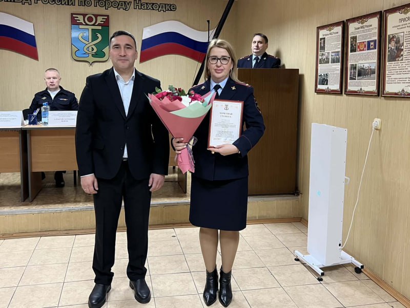 Рабочая поездка полковника полиции Алексея Попова в Находку началась с торжественной части. Он вручил сотрудникам очередные специальные звания, а глава города Тимур Магинский наградил отличившихся почетными грамотами за добросовестную службу и тесное взаимодействие с администрацией.