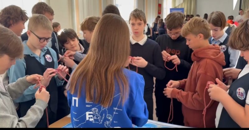 После беседы ребят ознакомили с направлениями и проектами «Движение первых» и предложили поиграть в игру, в ходе которой школьникам показали, как правильно вязать узлы, составлять портрет волонтера и многим другим интересным умениям.