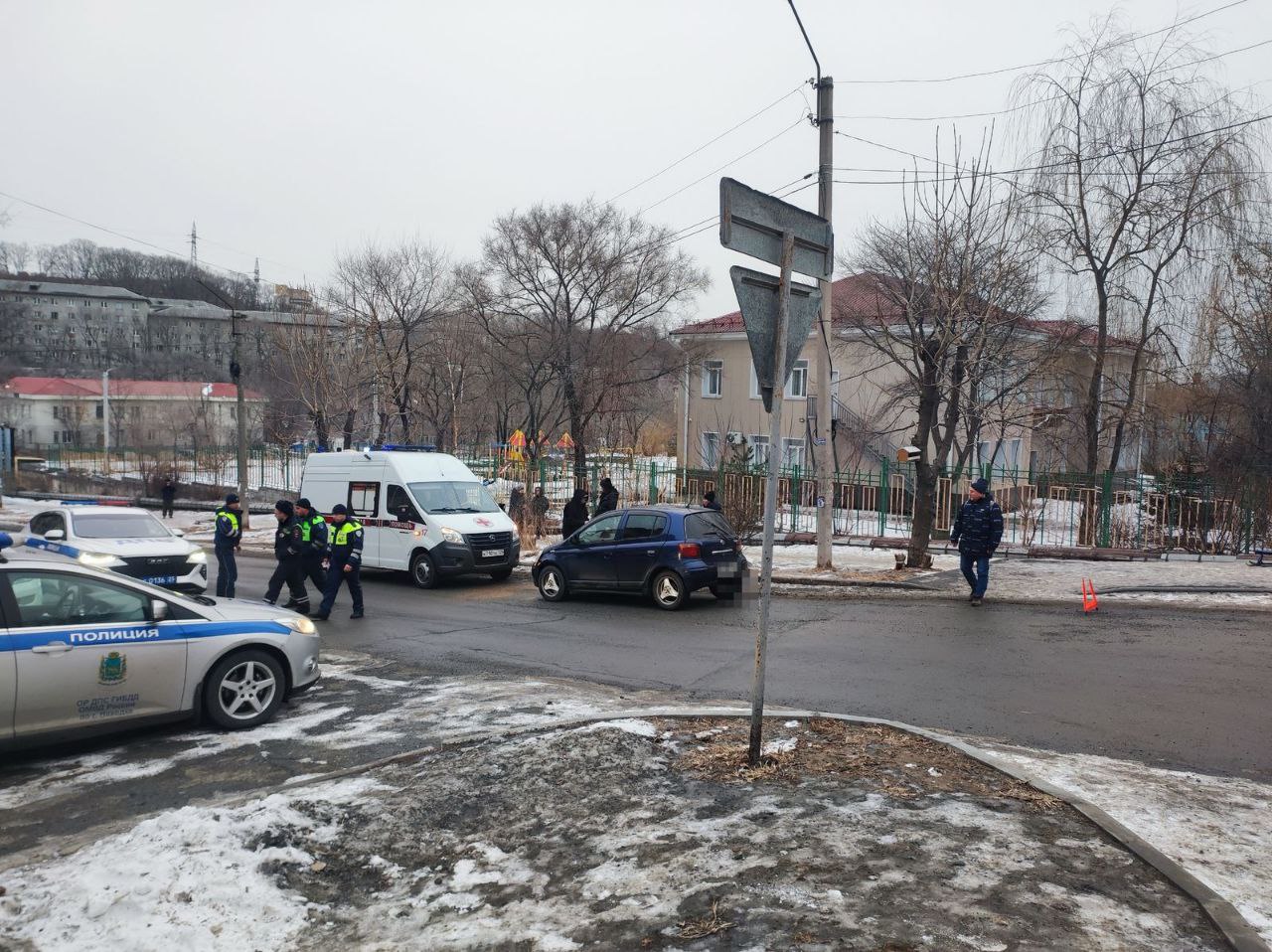 Госавтоинспекция Находки устанавливает обстоятельства наезда на несовершеннолетнего пешехода