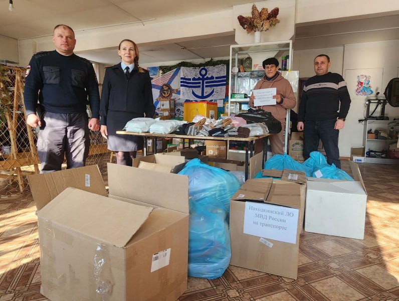 В преддверии Дня защитника Отечества сотрудники и ветераны Находкинского ЛО МВД России на транспорте совместно с неравнодушными гражданами и членами Общественного совета организовали отправку очередной партии гуманитарной помощи для участников специальной военной операции.