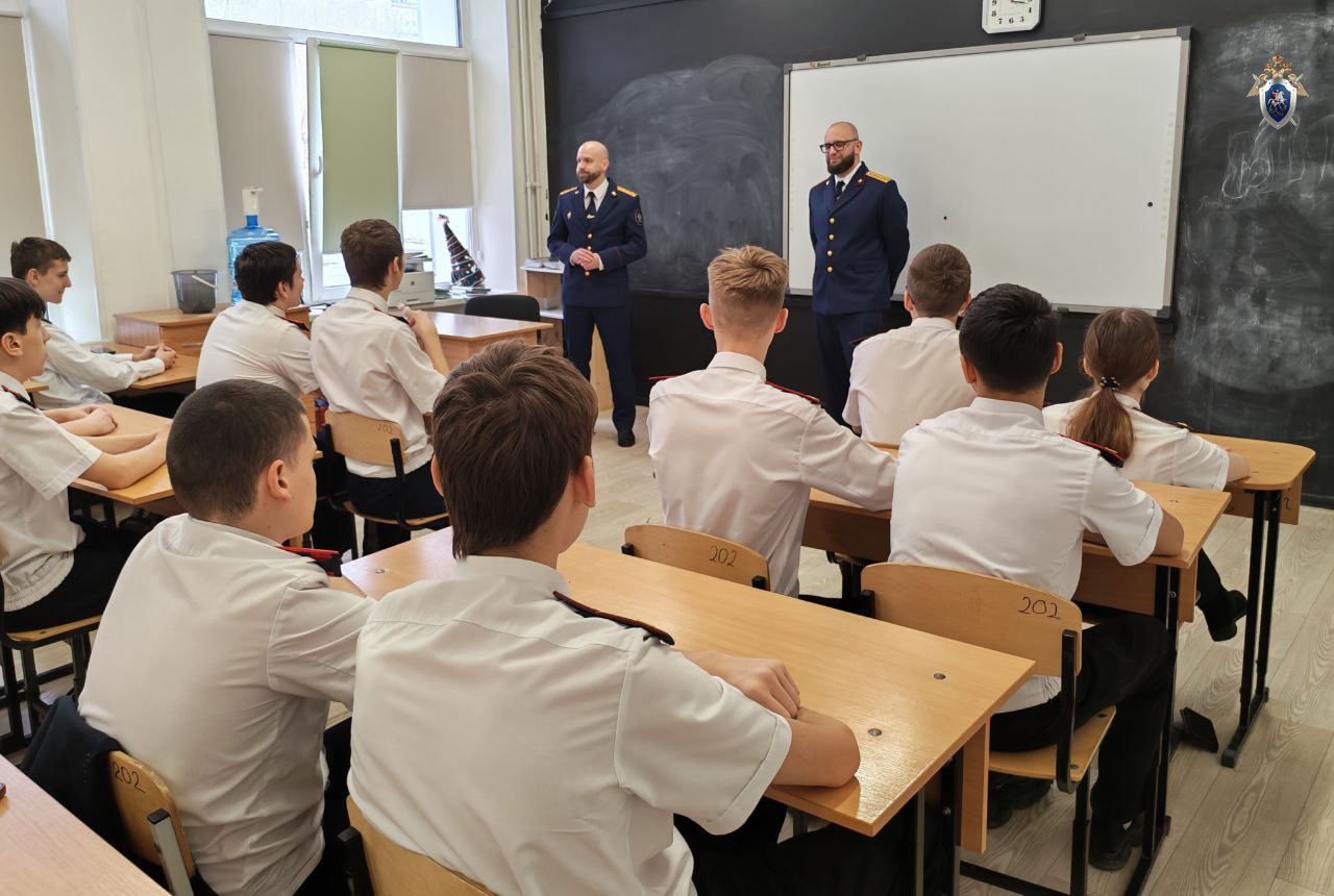 Встреча прошла в форме живого диалога. Кадеты активно задавали вопросы о службе в системе Следственного комитета и получали на них подробные ответы.