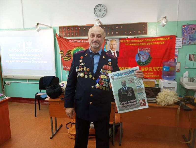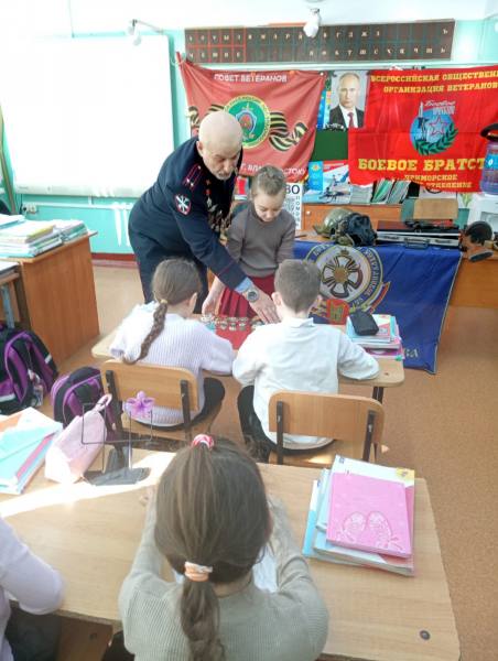 Программа мероприятий включала лекции о значении патриотического воспитания. Александр Сергеевич рассказал о ключевых эпизодах истории России: событиях Первой мировой и Великой Отечественной войн, боевых операциях в Демократической Республике Афганистан, конфликтах в Нагорном Карабахе и специальной военной операции.