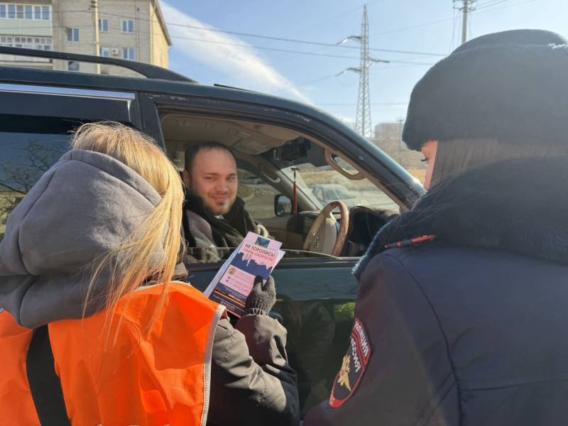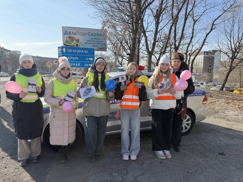 В Фокино Приморского края сотрудники Госавтоинспекции и школьники провели профилактическую акцию, приуроченную ко Дню защитника Отечества