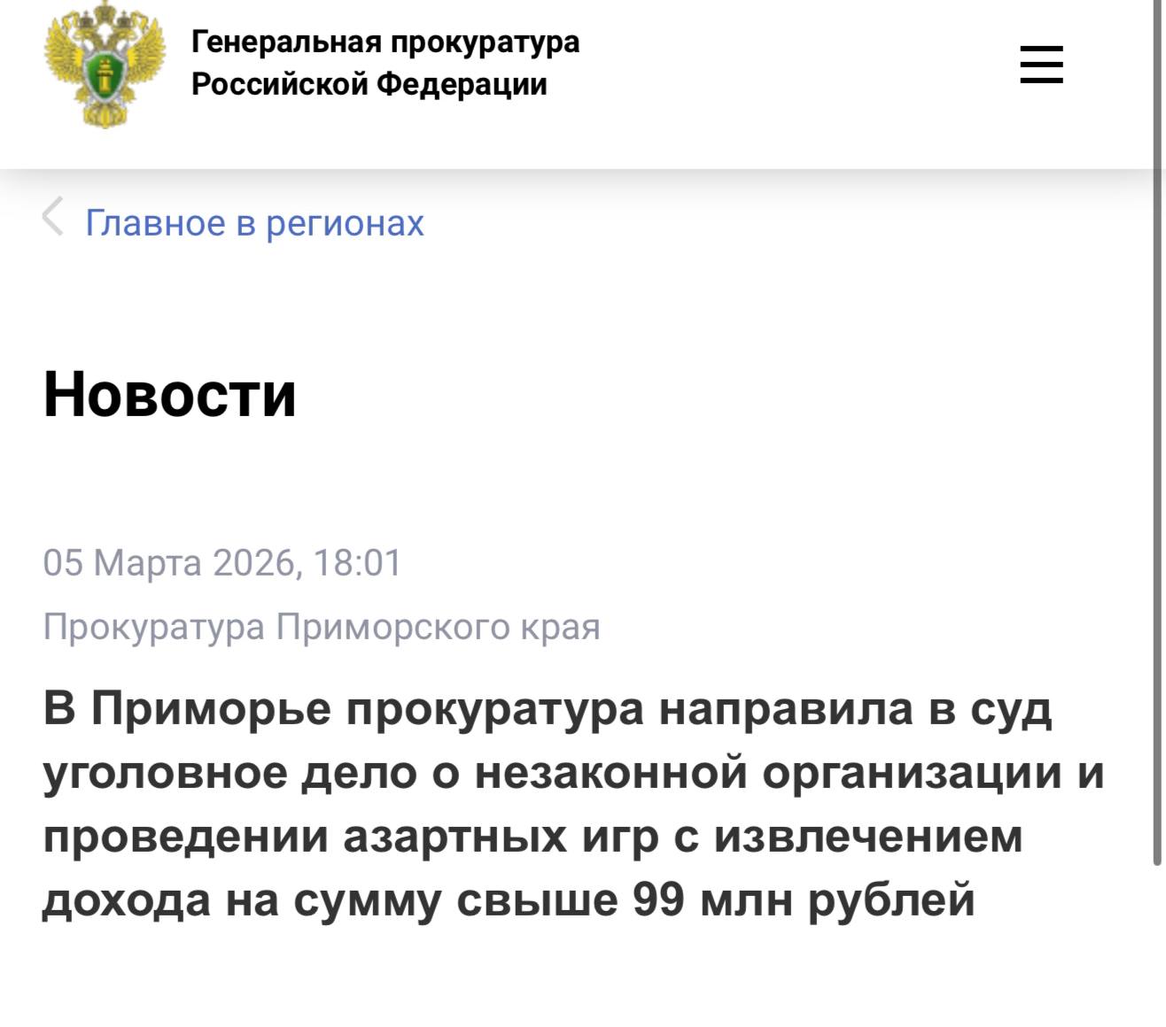Информация размещена на сайте Генеральной прокуратуры России.