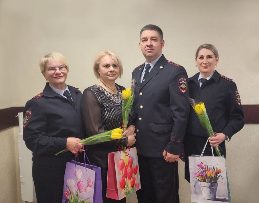 В преддверии Международного женского дня начальник Находкинского линейного отдела внутренних дел на транспорте полковник полиции Виктор Бардин поздравил сотрудниц полиции, чьи сыновья являются участниками специальной военной операции: старшего инспектора по делам несовершеннолетних Анну Кислицыну, инспектора патрульно-постовой службы полиции Наталью Маслову, специалиста по кадрам Ольгу Юлдашеву, чей сын к сожалению погиб, защищая Родину.