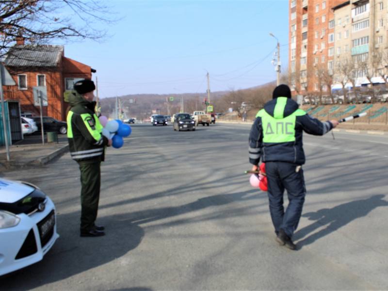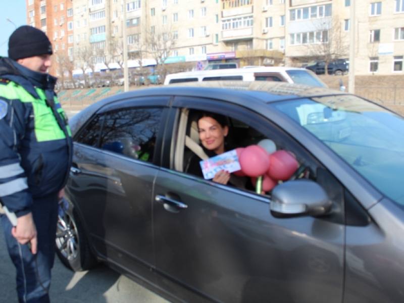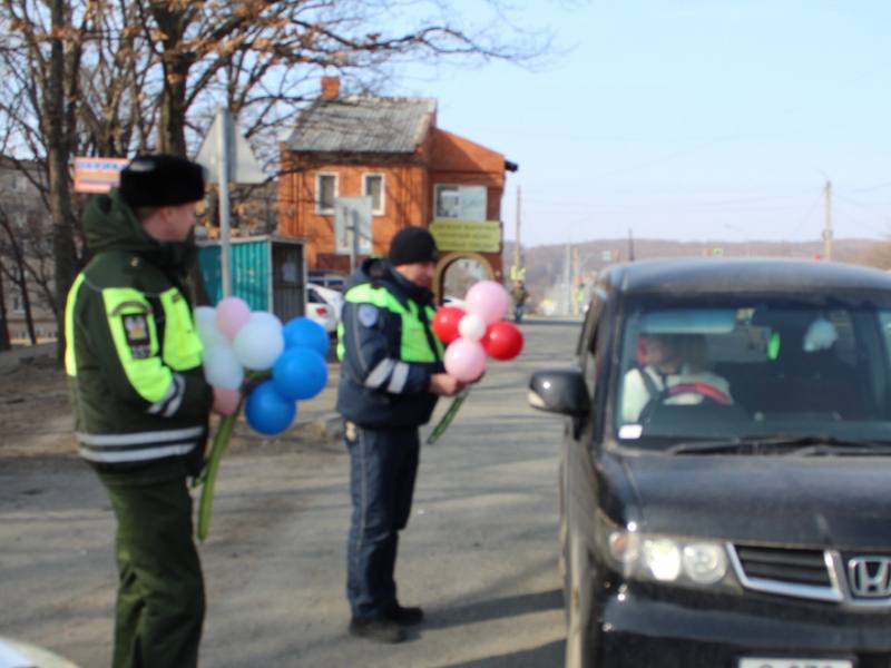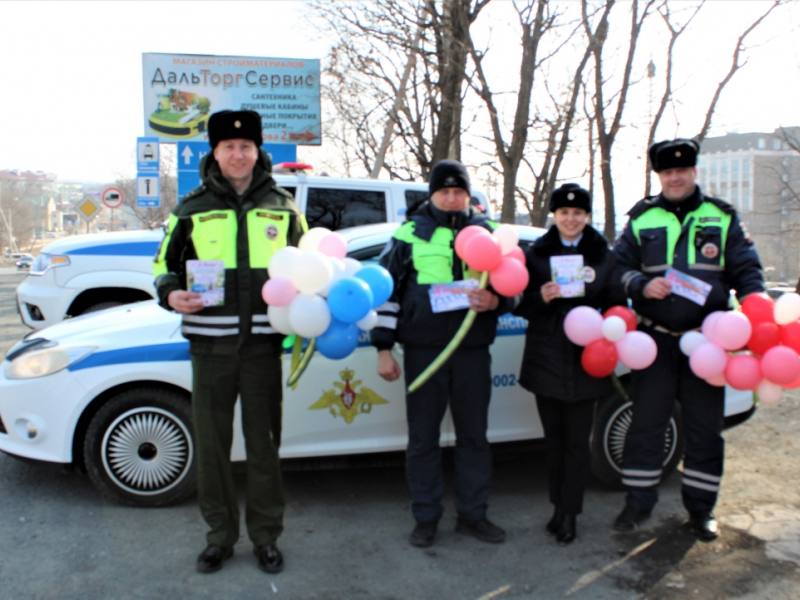 В Фокино военные и Госавтоинспекторы поздравили участниц дорожного движения с 8 Марта
