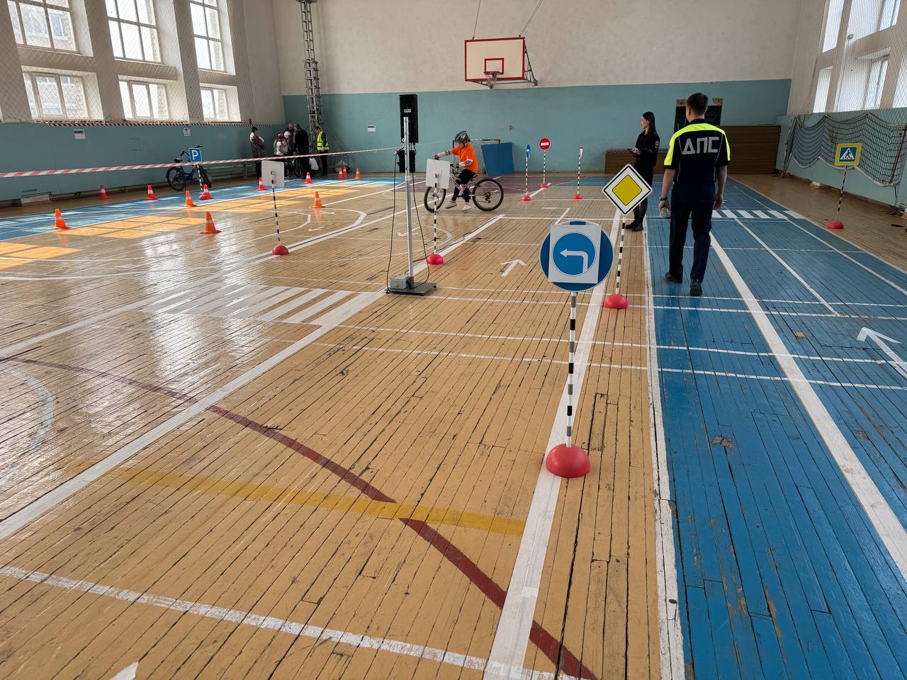 Команды разыгрывали тематические сценки, оказывали первую до врачебную помощь «пострадавшим» в ДТП, решали задачи, проезжали на велосипедах полосы препятствий и даже проходили «экзамены» на знания Правил дорожного движения.