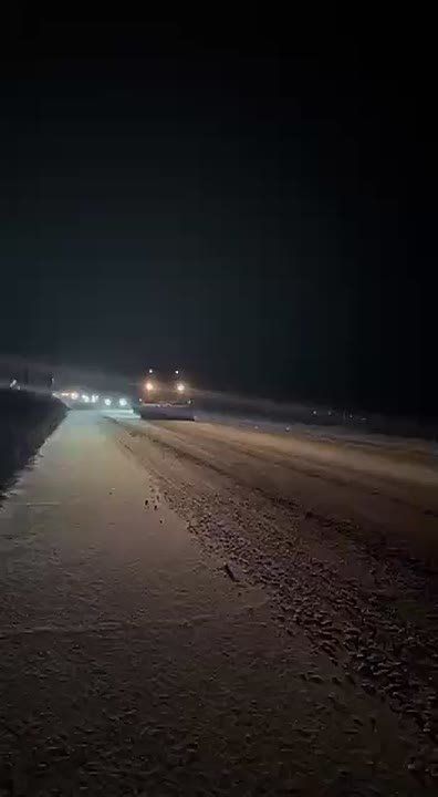 Специалисты Примавтодора обработали противогололедными материалами участок трассы в районе развязки на старый аэропорт, где произошло массовое ДТП// Минтранс Приморья