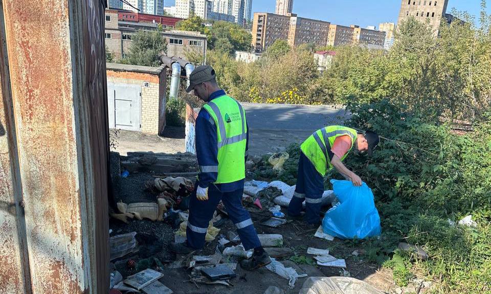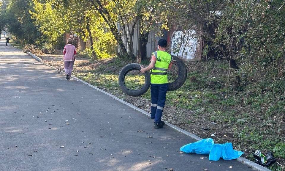 Санитарные службы работают во всех районах города: убирают мусор, удаляют рекламу, метут и моют остановки.