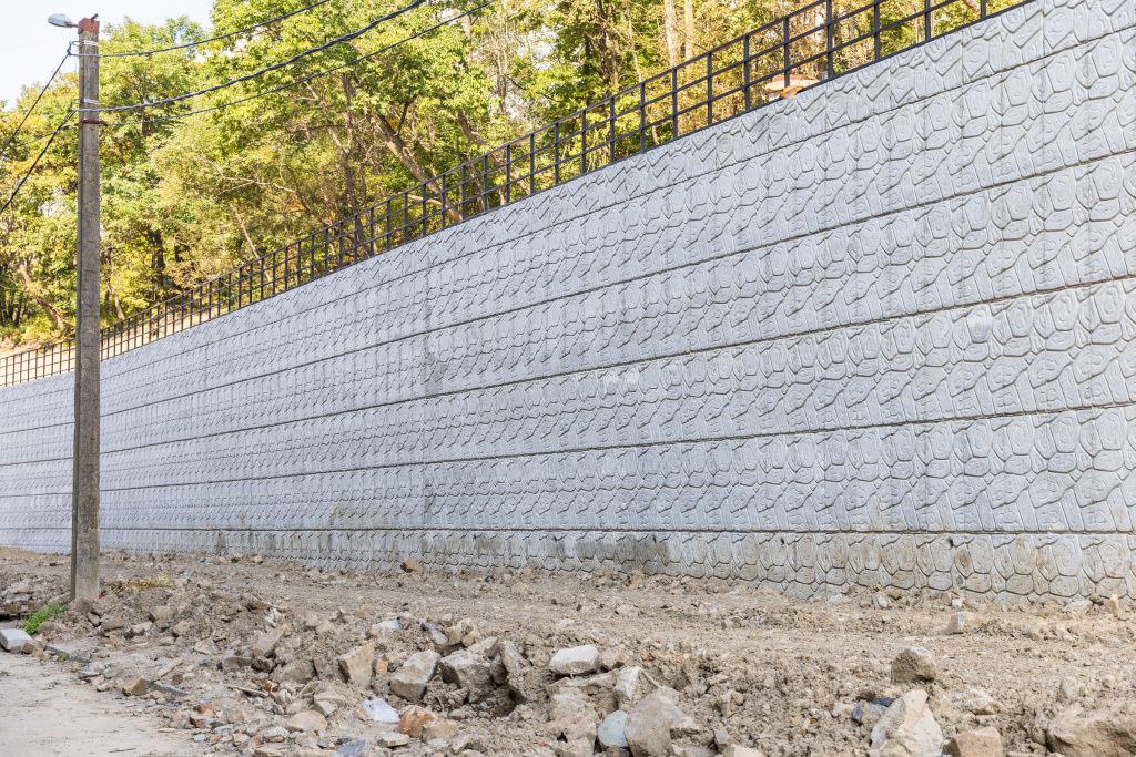 Во дворе дома № 13 на улице Черняховского завершается строительство новой подпорной стены.