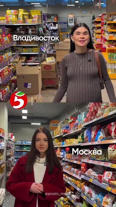 Девушки проверили цены на одни и те же товары в магазинах одной российской сети в разных городах. Результат: во Владивостоке большинство товаров дороже, а в Москве выше цена только на чай.