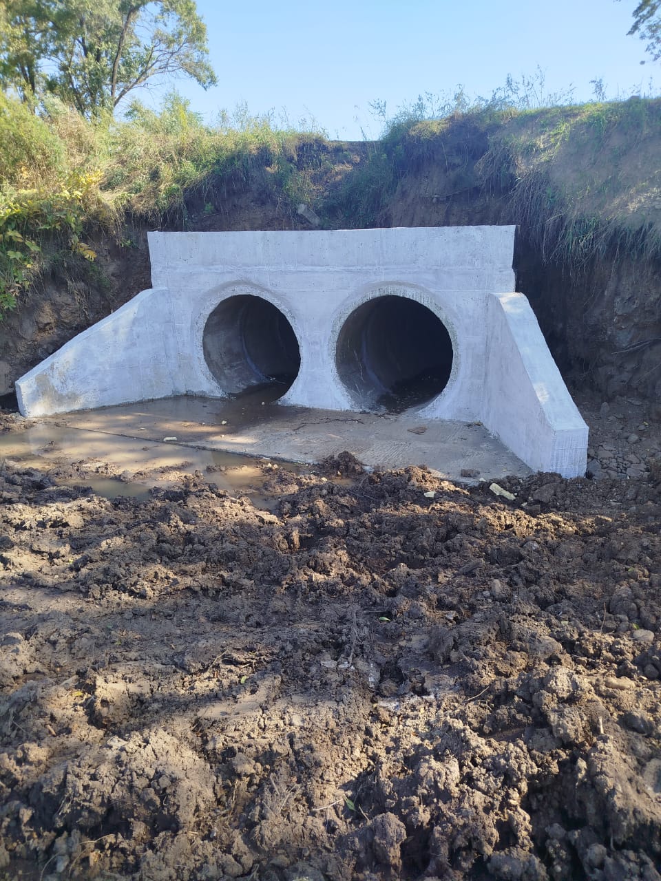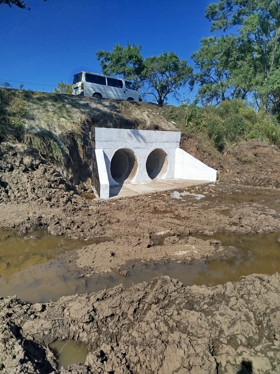 На въезде в село выполнены работы по восстановлению водопропускных труб под земельным полотном, снят верхний слой старого асфальта: участок готовят к укладке нового покрытия.