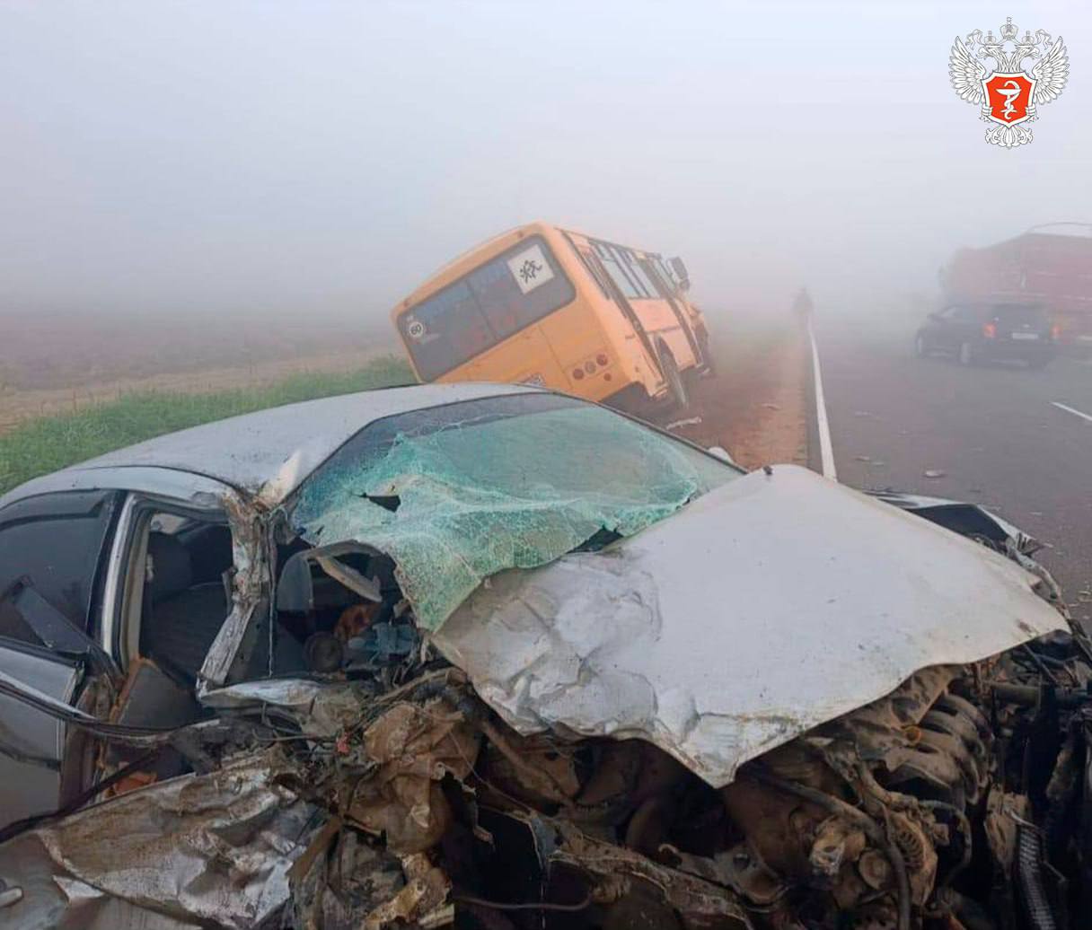 В момент аварии в автобусе не было детей, его водитель не пострадал.