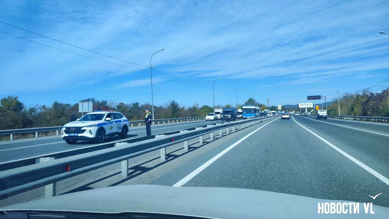 В районе Углового (участок от поворота на Артём и «Лемана Про») перекрыли дорогу в сторону города. Посреди трассы стоят полицейские и никого не пускают.