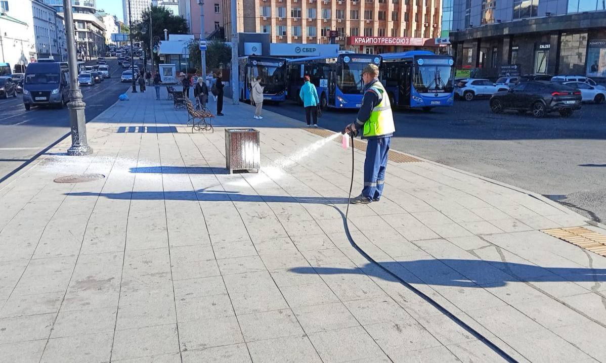 Сегодня во Владивостоке: дорожные и демонтажные работы, промывка ливнёвок, установка новых знаков, а также санитарная уборка по всем районам города.
