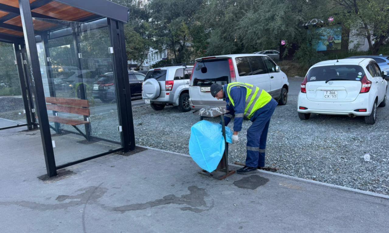 Санитарные службы проводят уборку мусора, прометание и мойку остановок, а также удаляют несанкционированную рекламу во всех районах города.