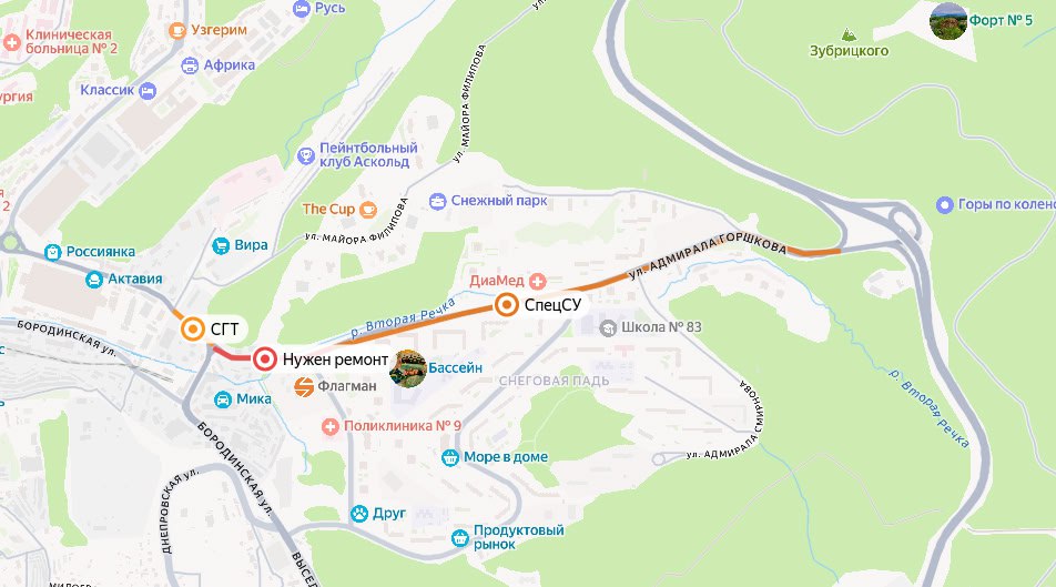 В микрорайоне Снеговая Падь завершается ремонт основного участка улицы Адмирала Горшкова с выездом на основную трассу. Чуть ранее дорожники отремонтировали небольшой отрезок Русской рядом с микрорайоном. В итоге между двумя теперь уже хорошими участками остался один небольшой с ямами и трамплинами. Недавно здесь побывала инспекция городских чиновников, после которой глава города пообещал включить проблемный проезд в перечень работ.