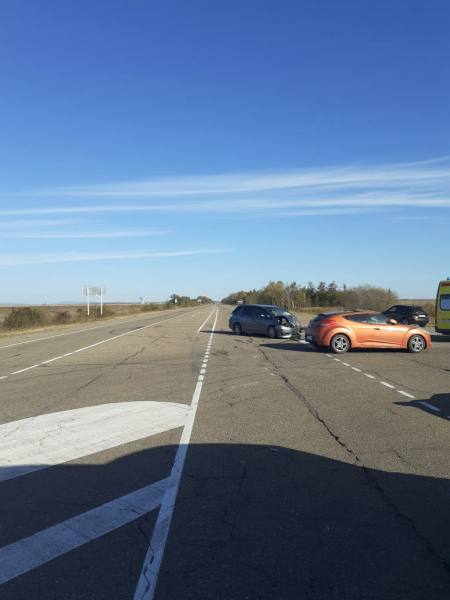 На трассе в районе села Степное столкнулись Hyundai Veloster и Honda Fit Shuttle. Авария произошла, потому что одна из машин не уступила дорогу, выезжая на трассу. В ДТП пострадали два человека, находившиеся в автомобиле, который спровоцировал столкновение.