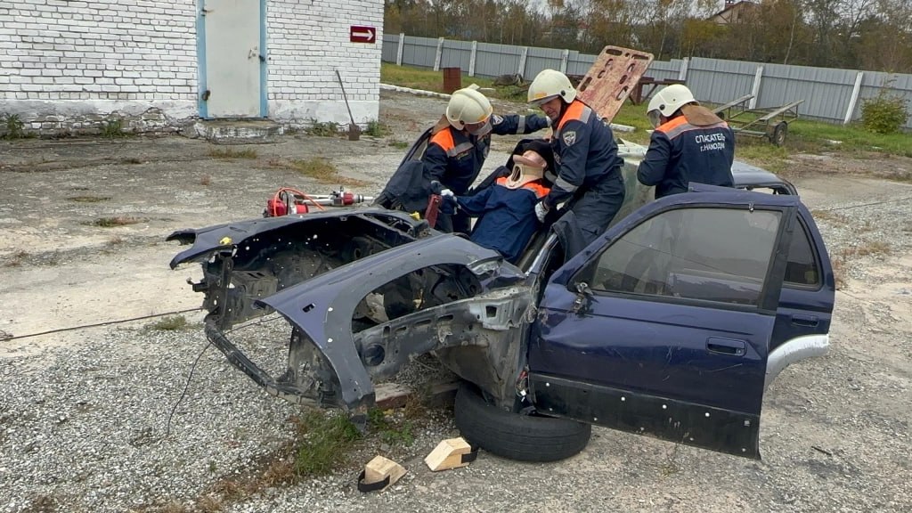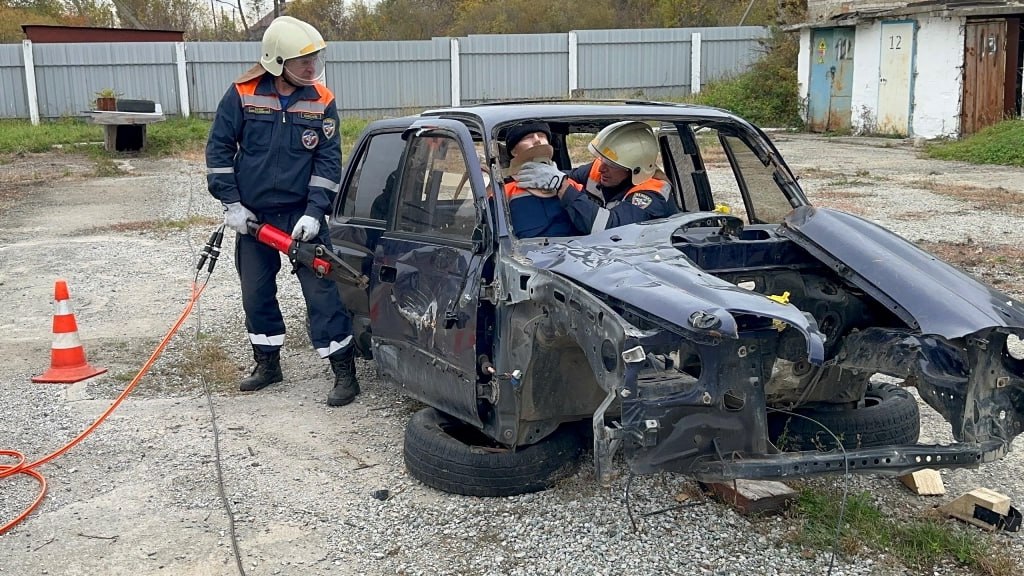 Отработали вскрытие дверей и снятие крыши поврежденного автомобиля