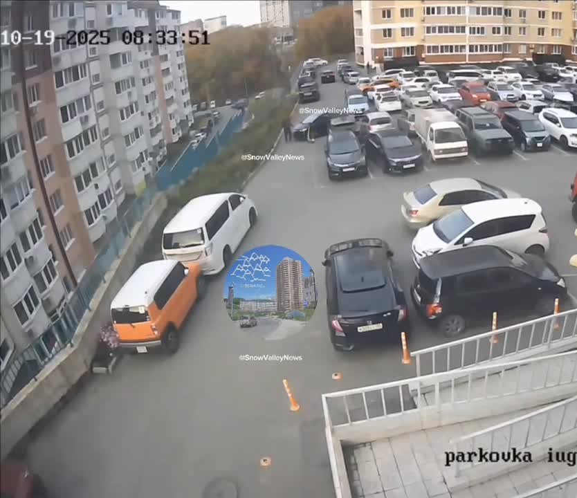 Вчера на парковке в районе Адмирала Горшкова, 83 на запись камеры видеонаблюдения попал момент ДТП с участием электросамоката.