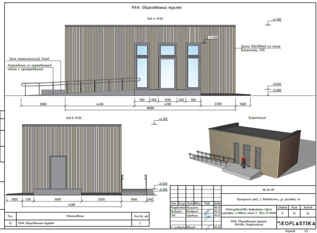 В парке имени Лазо на Санаторной планируют построить новый современный туалет, на эти цели дополнительно выделено 7,77 млн рублей. Это сделают в дополнение к уже идущим озеленению, мощению брусчаткой троп, созданию душевых, установке шезлонгов и спасательных вышек за 112,5 млн рублей. В северной части парка сейчас есть два капитальных санузла, но выглядят они не очень хорошо. Теперь вместо одного из них появятся современный клозет с несколькими кабинками и пандусом для маломобильных людей на входе.