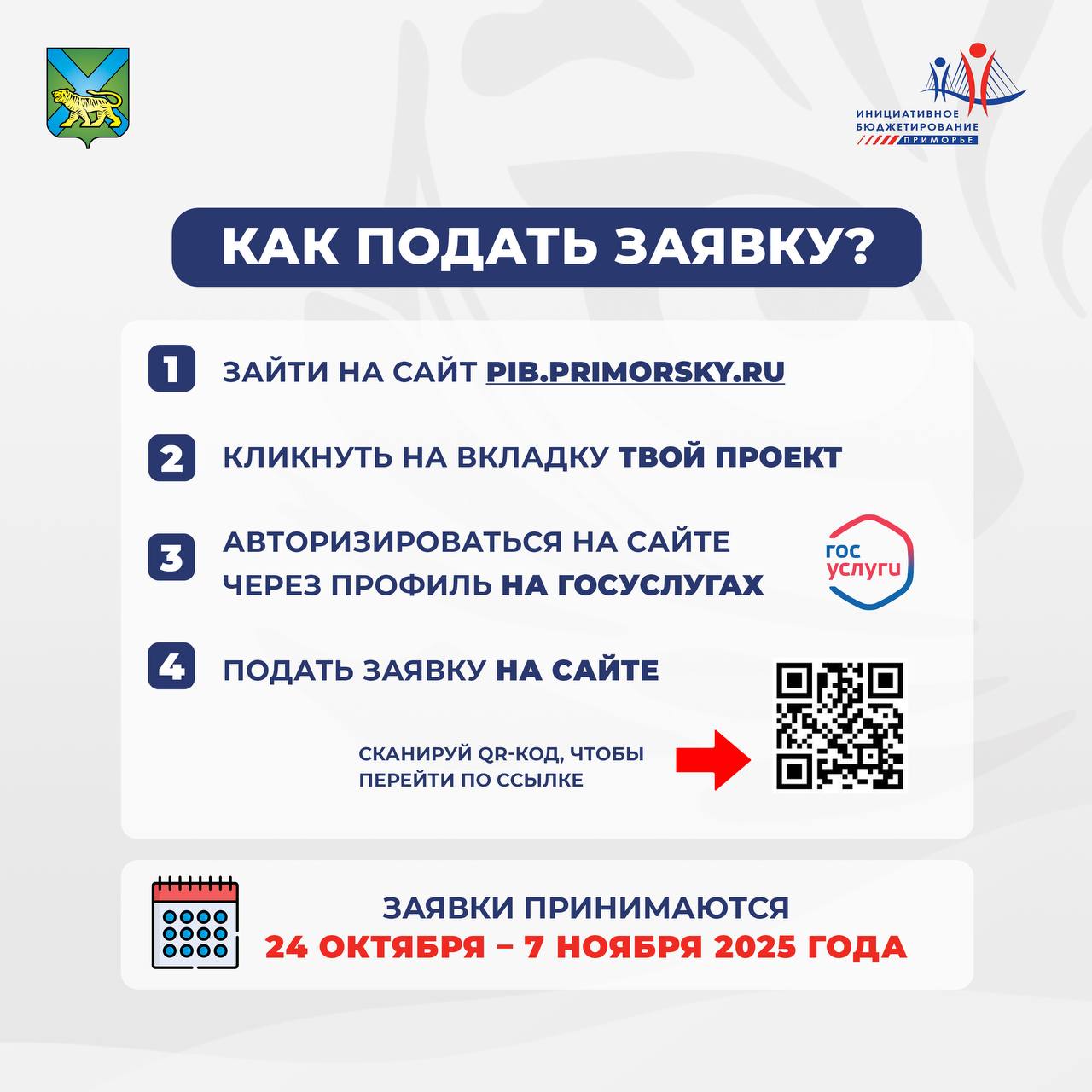 Заявки принимаются на портале инициативного бюджетирования Приморского края по 7 ноября включительно через учетную запись на Госуслугах.