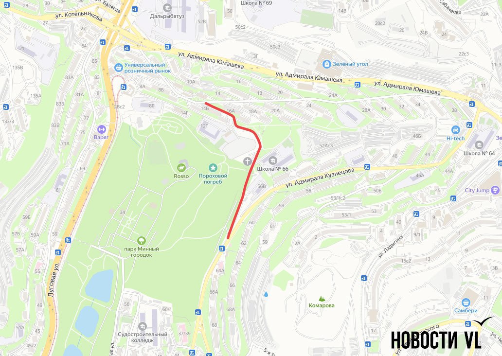 Дорогу от Юмашева, 14 до выезда на Кузнецова сначала закрыли с 22 до конца дня 30 августа, потом в работах сделали перерыв, видимо, на время Восточного экономического форума и возобновили их 10 сентября. Открыть проезд планировали в 23:00 31 октября.