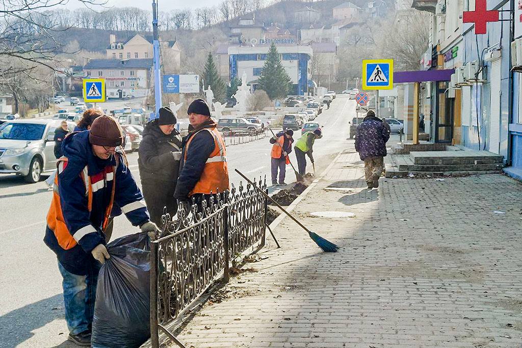 Сегодня работы ведутся на центральной улице - Ленинской. Коммунальные службы подметают тротуары, убирают пластиковый мусор и собирают опавшую листву. После завершения работ в центре, бригады продолжат уборку на других запланированных улицах города.