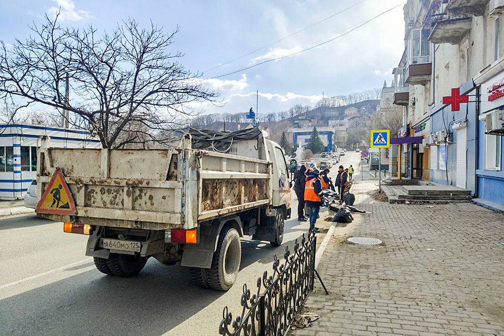 Ранее уборка была проведена на улицах Постышева и Верхне-Морской, где также выполнялась прочистка ливнестоков.