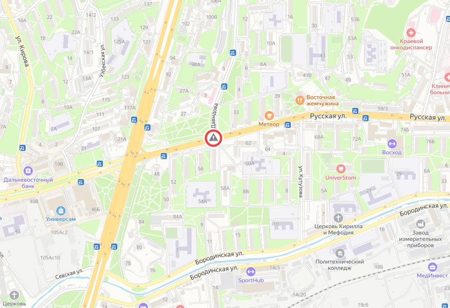 К коллапсу на Второй Речке добавился ещё и обесточенный светофор на перекрёстке Русской и Давыдова. Из-за реконструкции на развязке производят