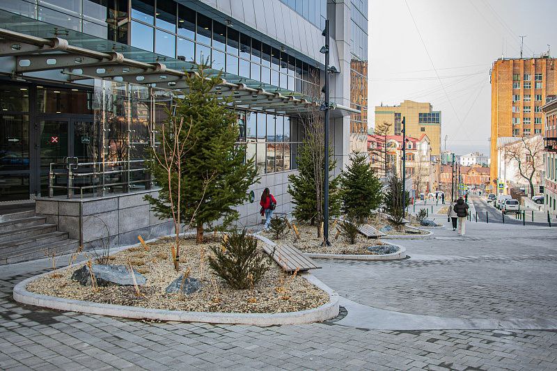Здесь провели большие работы по реконструкции, создав новые пешеходные связи, парковочное пространство, обустроив места для отдыха и отремонтировав не только проезжую часть, но и все коммуникации.