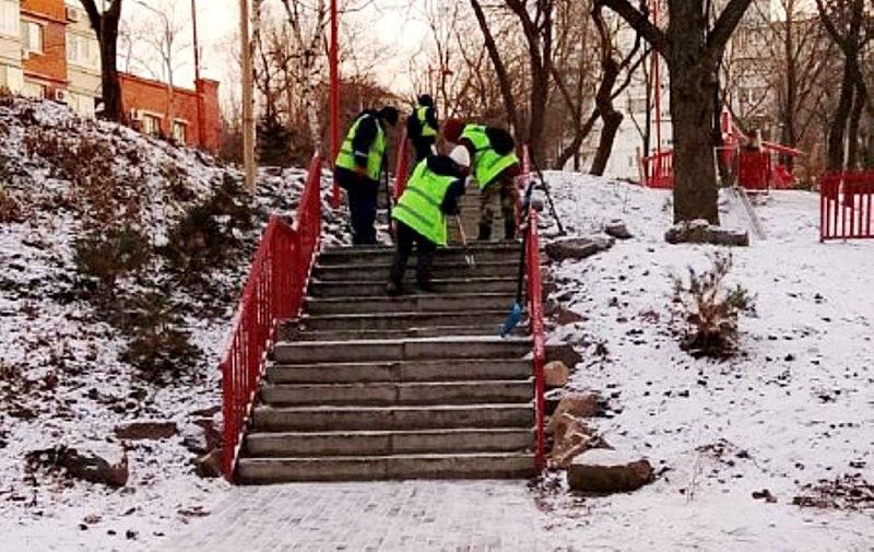 Дорожные службы расчищают Владивосток после непогоды